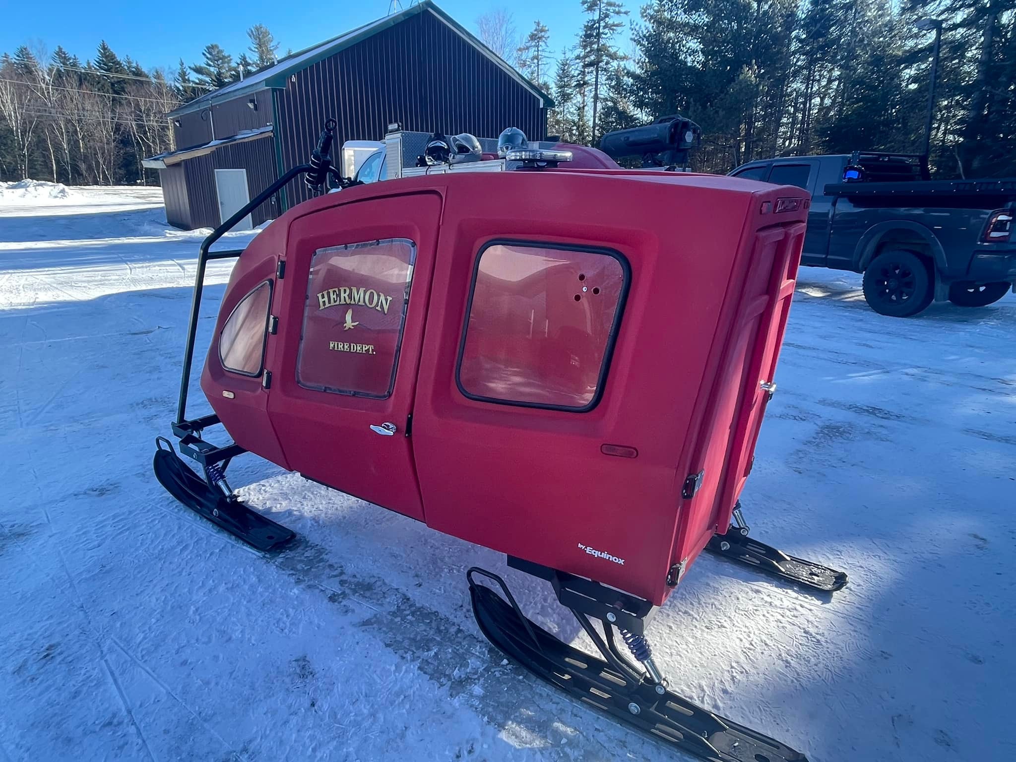 Hermon Fire Chief Cody Sullivan says “The snowbulance and the snowmobile are our biggest tools. Both pieces of equipment are in a large trailer, ready to go, with helmets and cold-weather gear, all ready to be deployed out the back of the trailer. “