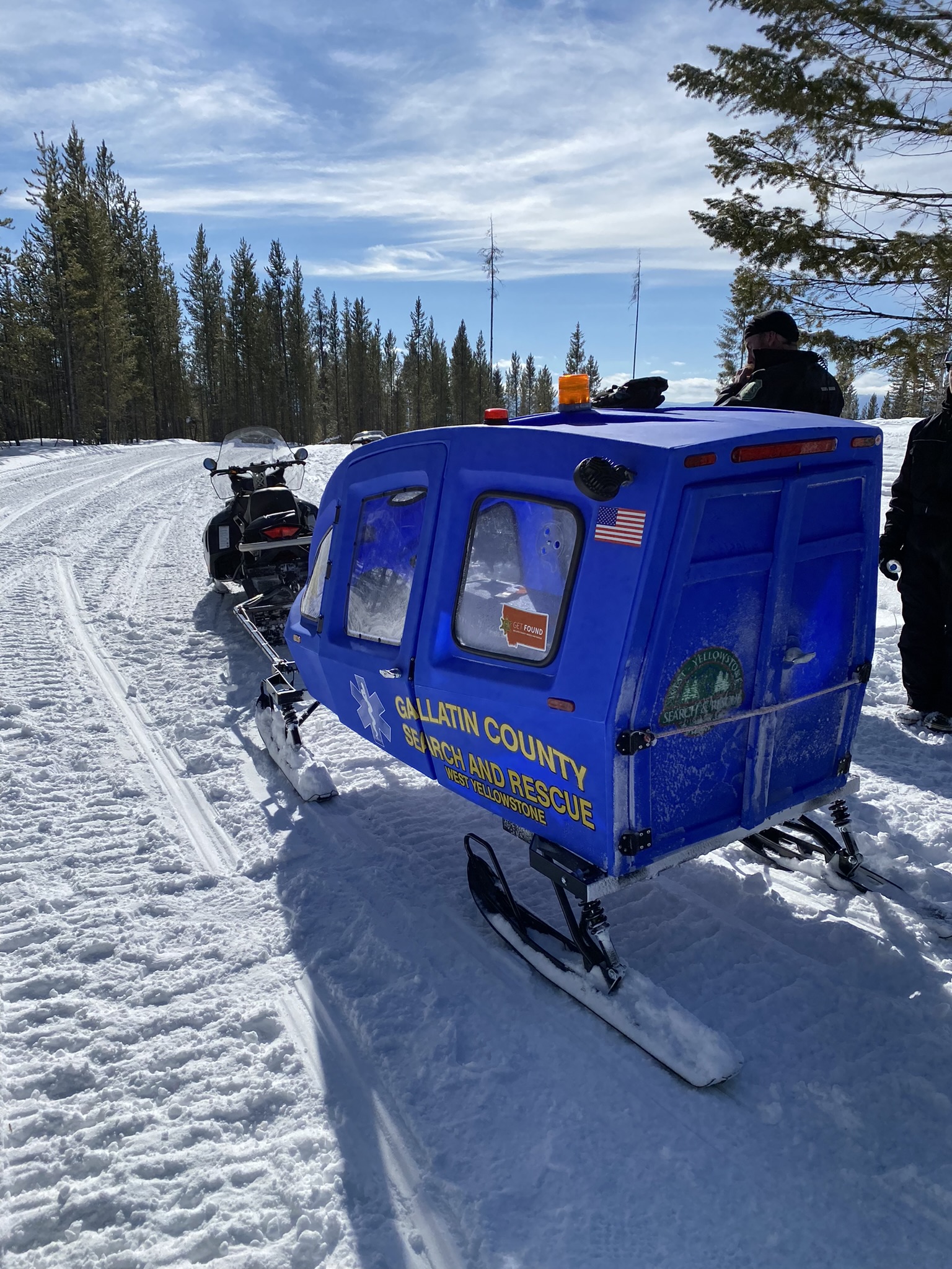 Snowmobiler rescued after suffering possible heart attack. Volunteers from Gallatin County Search and Rescue in West Yellowstone, Gallatin Custer National Forest, National Park Service, Hebgen Basin Rural Fire Department and a helicopter from Air Idaho responded to assist with the rescue.